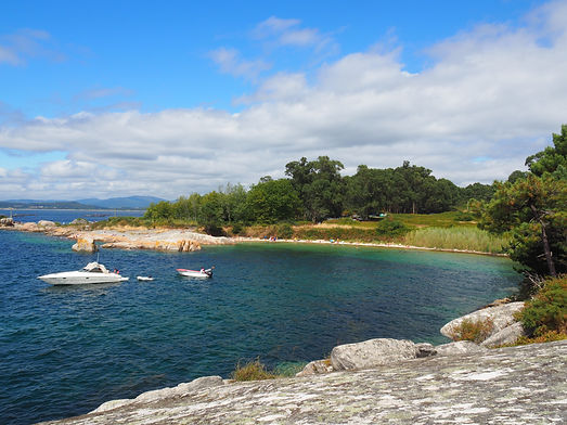 No dia seguinte, saindo de Pontevedra, fomos em direção a Sanxenxo parando um pouco na praia central, mas o melhor da zona, na nossa opinião, é o que se segue. Passando Sanxenxo descobrimos finalmente belas praias, inseridas no meio da natureza em estado quase natural, que para quem gostar de explorar pode aventurar-se pelas suas falésias em busca destas praias selvagens.